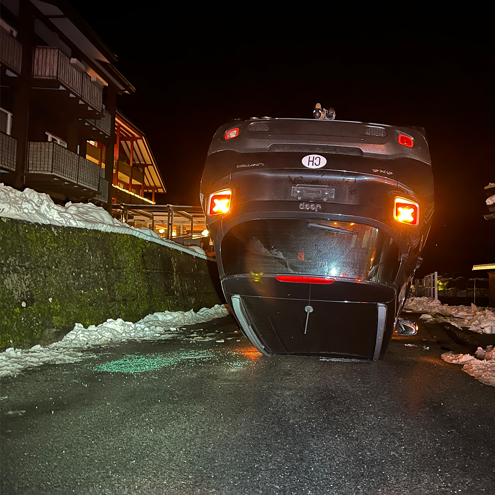 Der Unfall ereignete sich, als der Fahrzeuglenker versuchte, sein Auto an seinem Wohnort in Giswil OW zu parken. Dabei geriet er zu weit nach rechts, was dazu führte, dass das Fahrzeug die Stützmauer hinunterkippte und schließlich auf dem Dach liegend zum Stillstand kam.